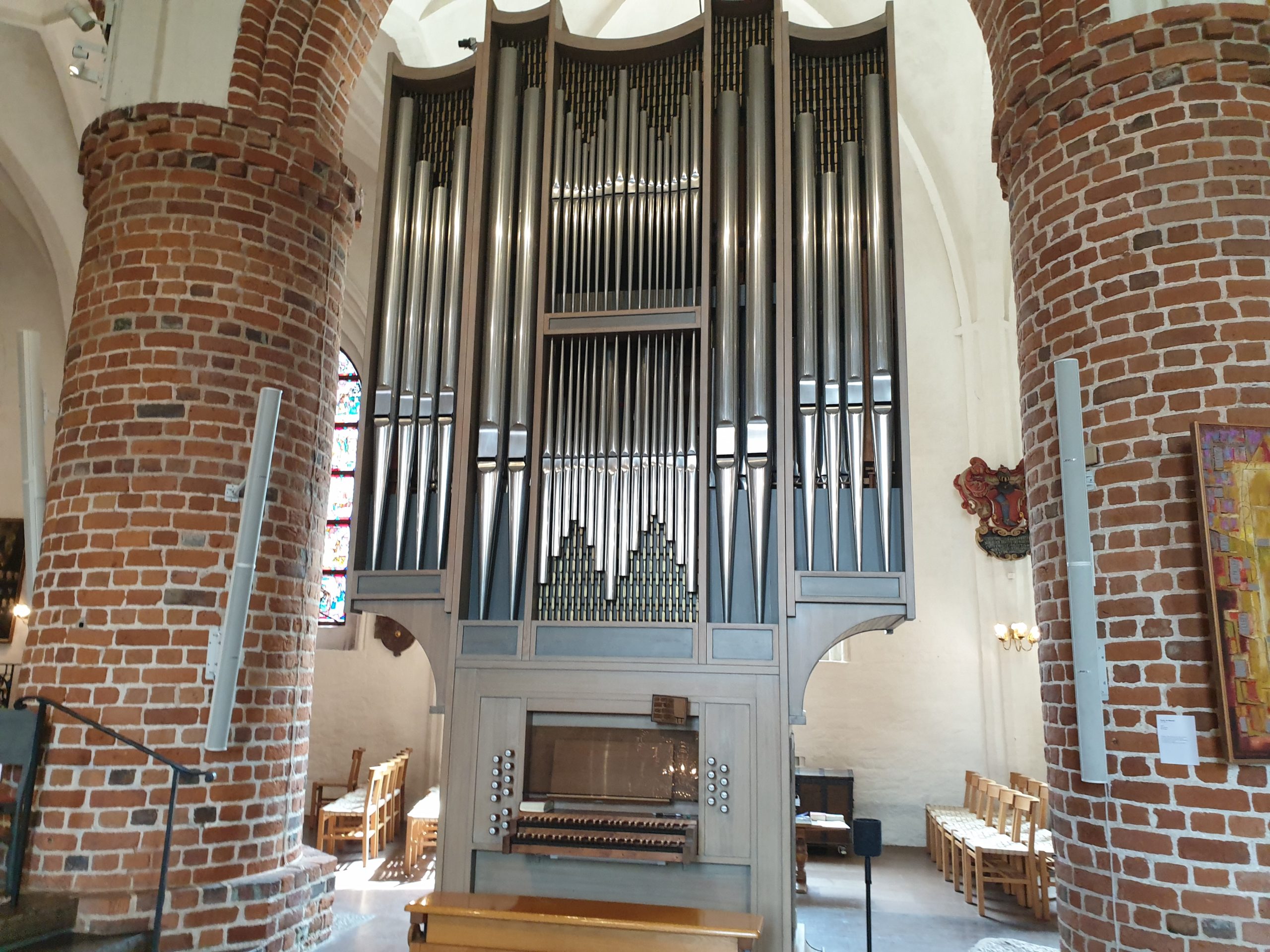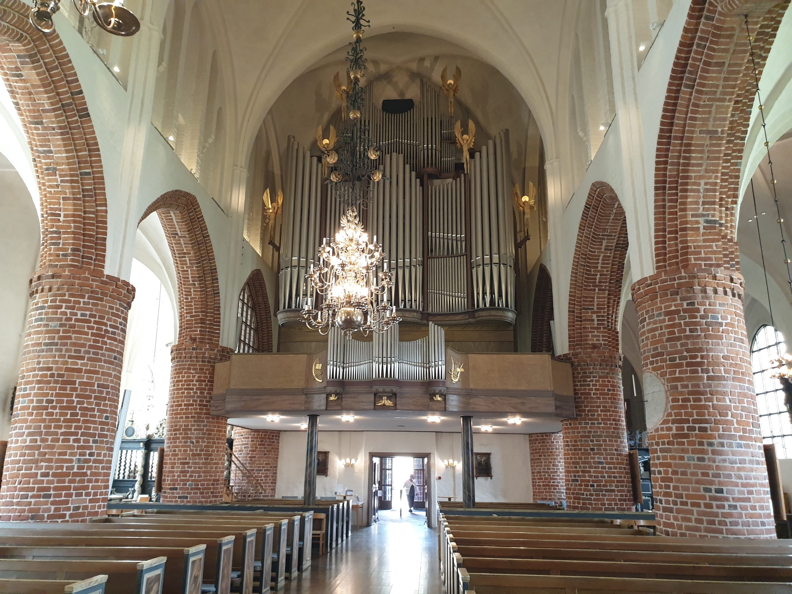 Heute morgen sind wir zeitig nach unserem üblichen Werk los gefahren. Das Ziel dieser Etappe ist die Stadt Halmstad am Kattegat. Wir machen unser Womo an der Marina in Halmstad fest, von hier aus ist es ein Katzensprung in die Stadt. Deshalb machen wir auch direkt nach einem Kaffee einen ausgedehnten Stadtrundgang. Leider ist das Schloß nur vom Innenhof zu betrachten, alle Türen sind verschlossen. Dann geht es in das Centrum. Halmstad hat eine sehr schöne große Fußgängerzone. Am Schluß sehen wir uns noch die alte St. Nikolaikirche an, die Fertigstellung datiert auf das Jahr 1470. Die Besonderheit hier sind die 2 Orgeln.