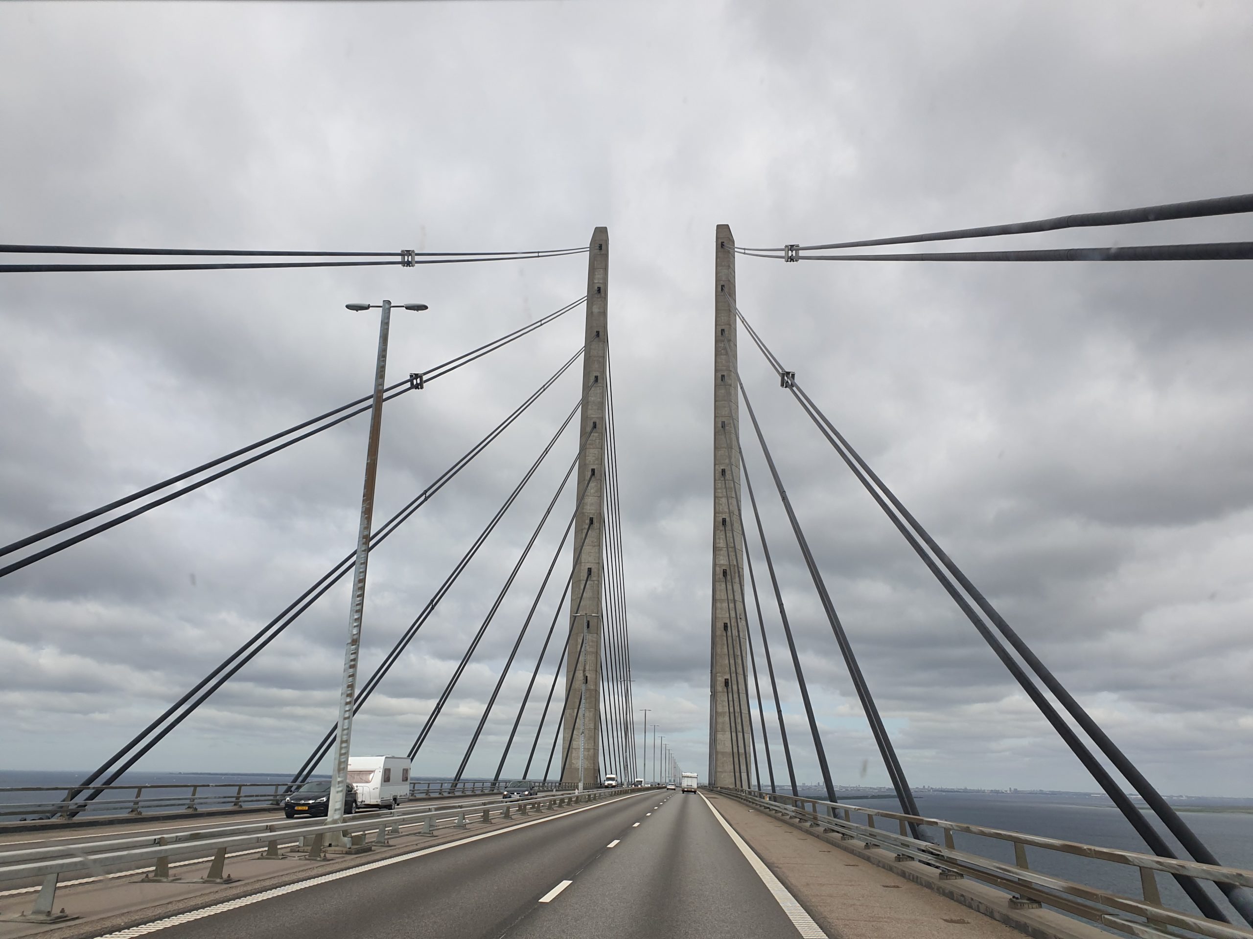 Nach unseren allmorgentlichen Verrichtungen fahren wir weiter. Heute verlassen wir Schweden und kommen nach Dänemark. Wir fahren wieder über die große Brücke und Tunnel über den Öresund. Unser Brobizz funktioniert wieder einwandfrei, ich muss vor der Schranke nicht mal anhalten und kann so durchfahren.