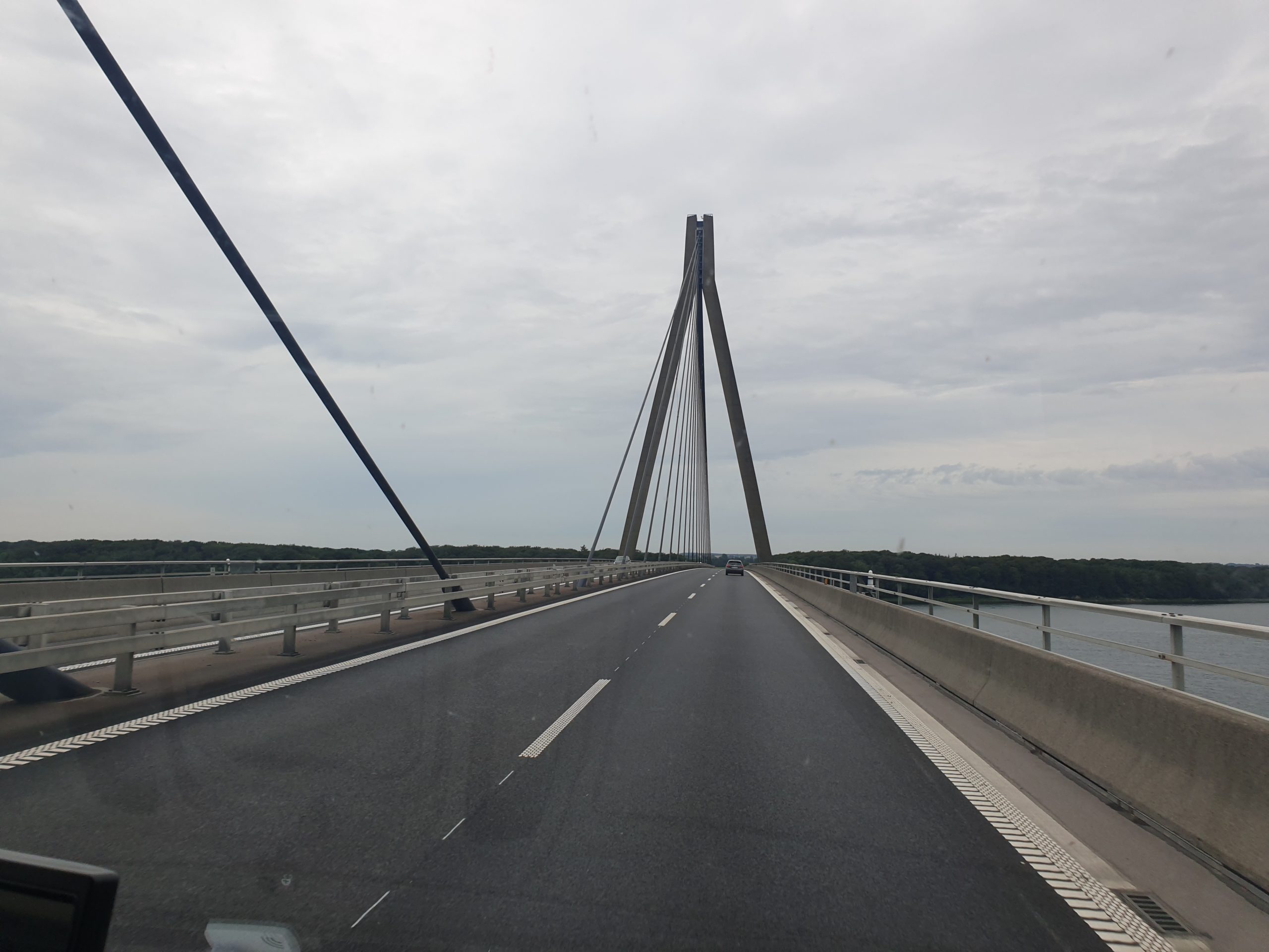 Heute morgen haben wir einen ganz leichten Nieselregen. Wir erledigen unsere Sachen und machen uns auf den Weg. Über eine große Brücke und mit der Fähre nach Fehmarn.