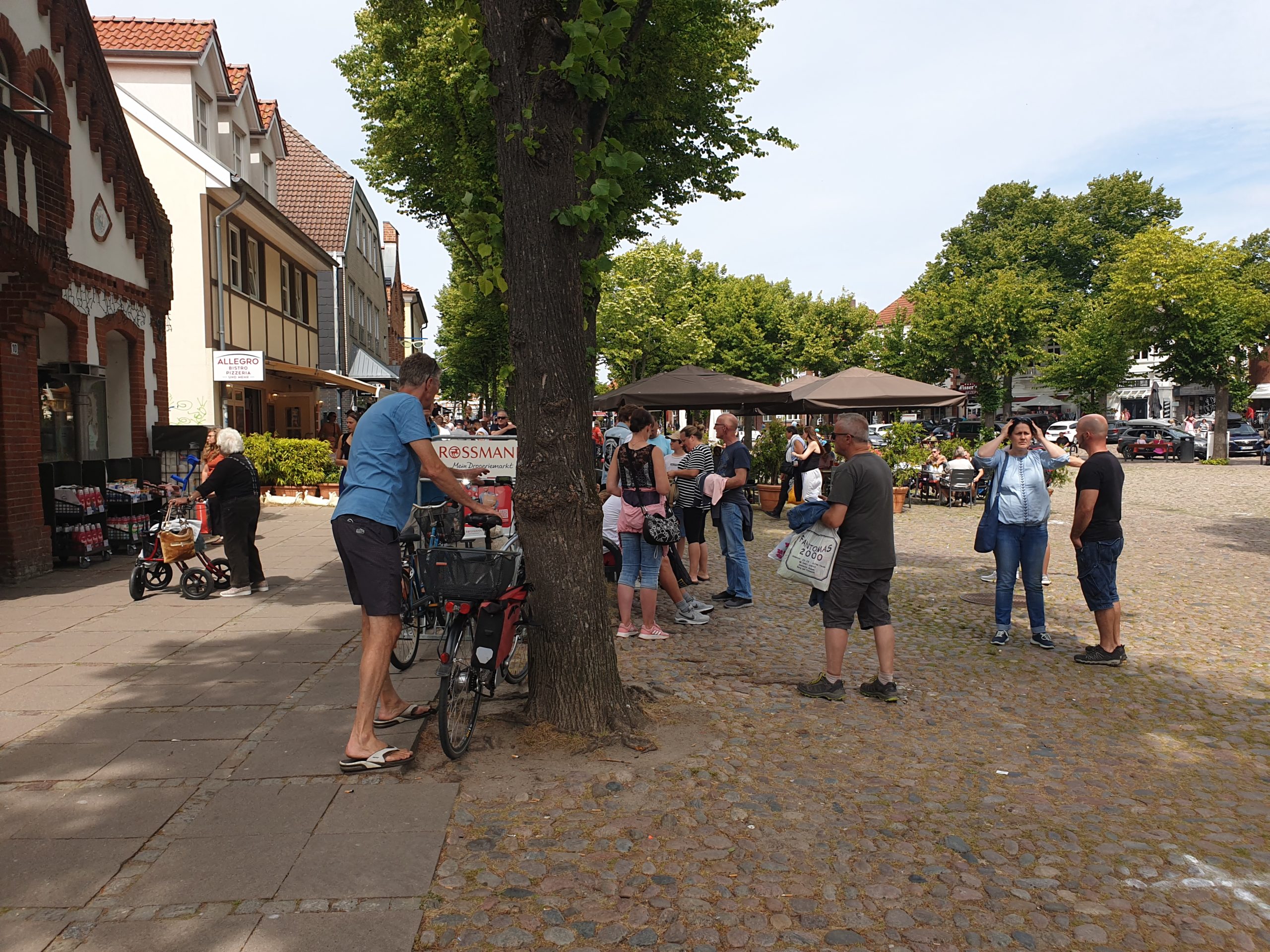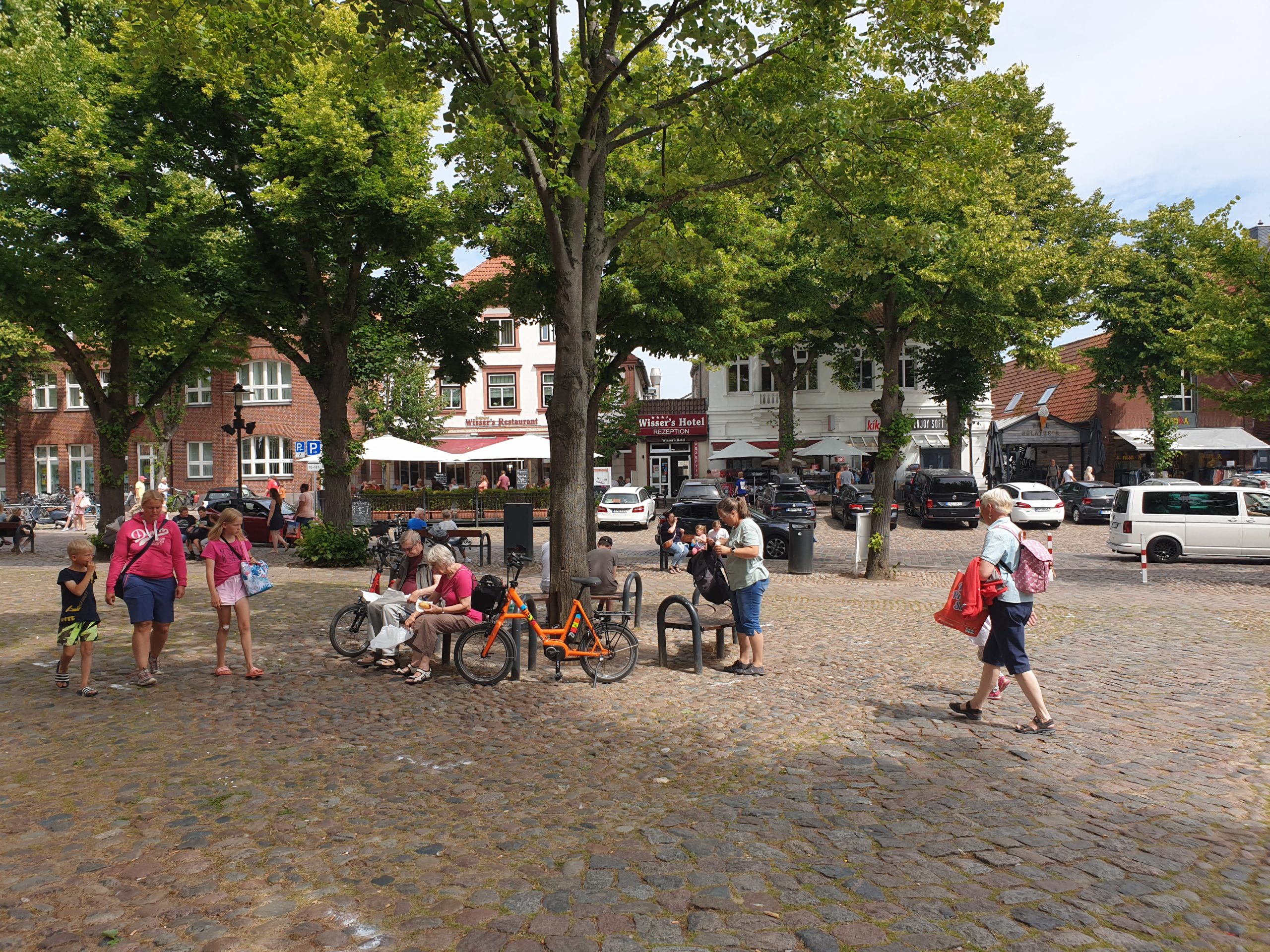 Bei der Anfahrt zur Fähre haben wir etwas Stau, diese Automaten sind nicht für jeden etwas Gutes. Und bei der Einfahrt in Burg auf Fehmarn haben wir wieder Stau, die kleine Stadt ist voll! Erstaunlicherweise bekommen wir auf dem zentralen Stellplatz noch ein Plätzchen für uns. Dieser Platz ist nicht besonders schön, liegt aber zentral und ist mit allem ausgestattet. Wir machen einen ausgiebigen Stadtbummel mit allen was da so zu gehört.