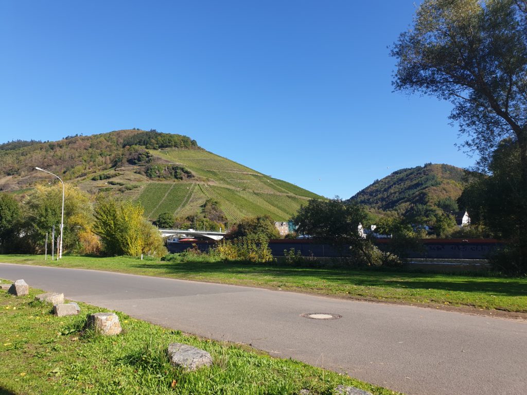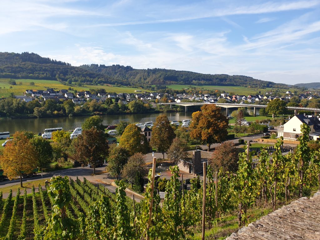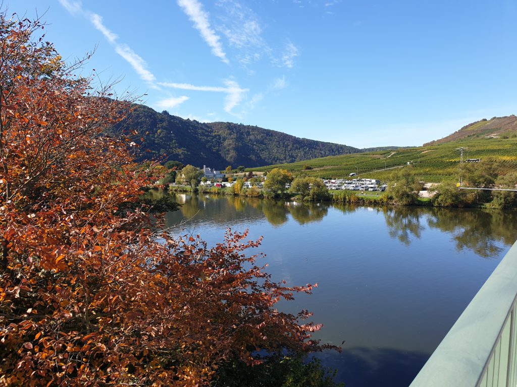 Der goldene Oktober ist eingezogen und wir fahren für ein paar Tage an die Mosel vom 06. bis 11.10.2022. Der erste geplante Stellplatz am Freudenberg an der Mosel war schon voll. Also weiter suchen. Der Stellplatz in Adelgund und der erste in Zell sind ebenfalls voll. Wir finden dann einen freien Platz in Kaimt gegenüber von Zell direkt an der Mosel. Die Sonne scheint und es ist angenehm warm. Bis zum Centrum von Zell sind es knapp 2 km, das passt.