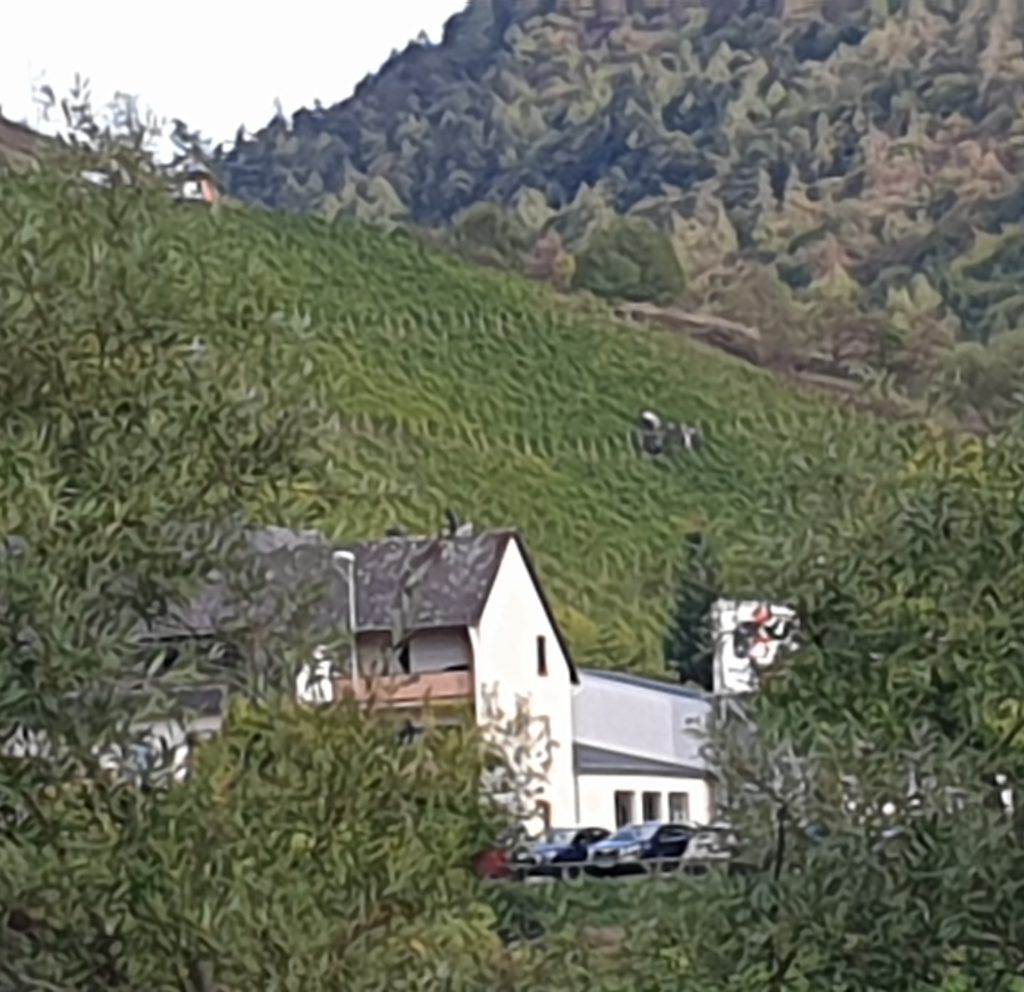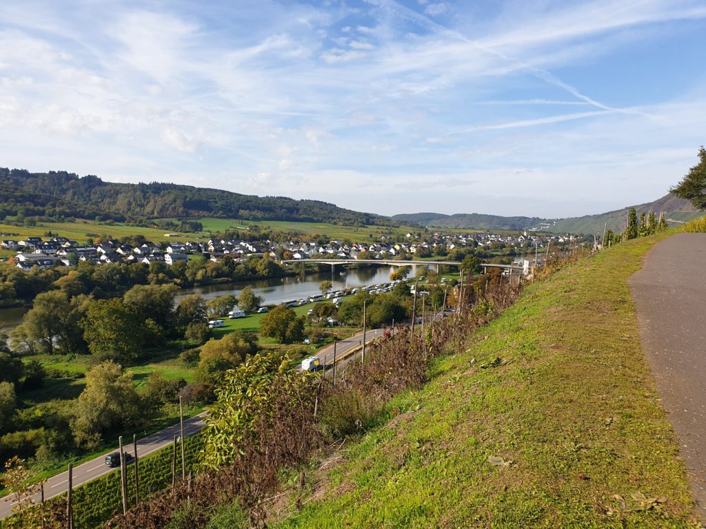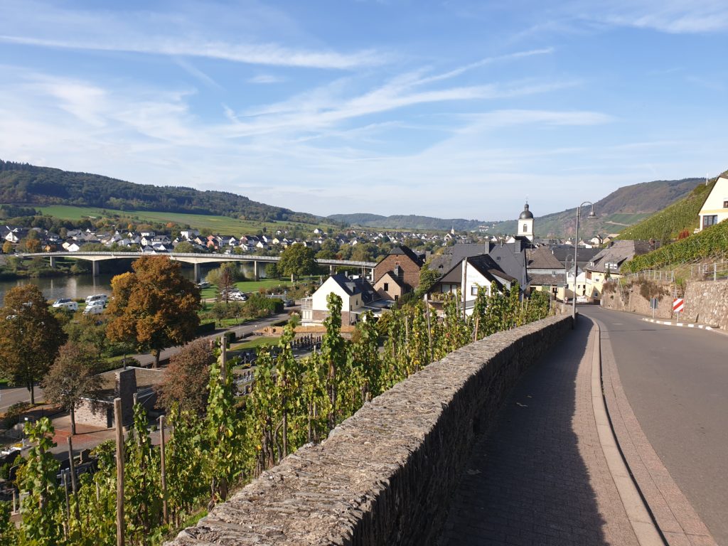 Wir stehen wieder mit Nebel auf, so gegen 11 Uhr kommt die Sonne raus. Wir machen einen Spaziergang durch das Dorf und gehen anschließend auf die Kinheimer Höhe. Hier hat man schönen Ausblick auf das Moseltal.