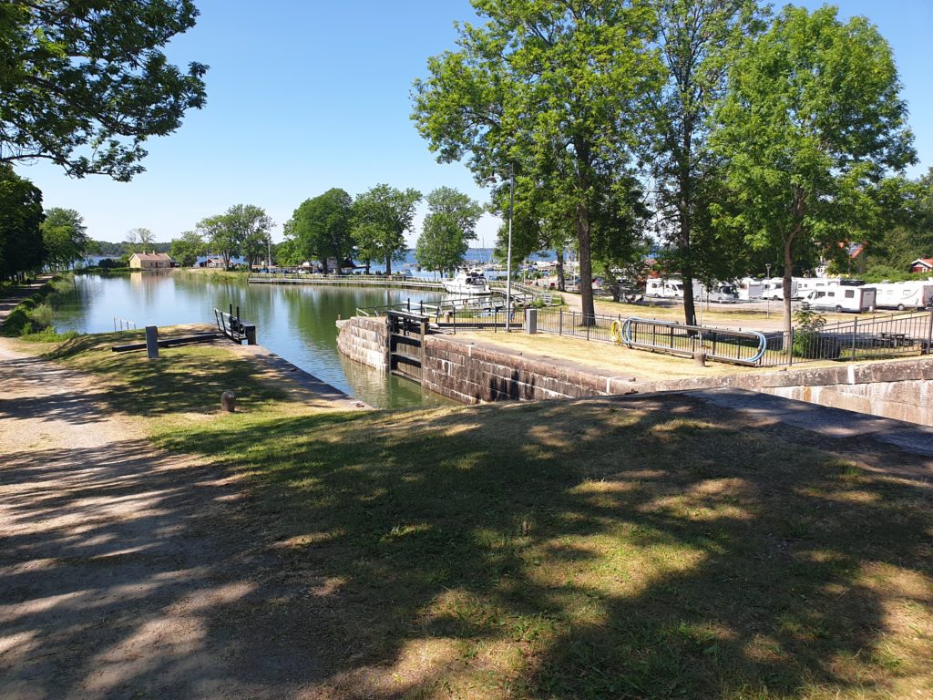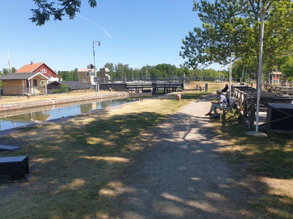 Es ist schon langweilig, aber die Sonne begrüßt uns jeden Tag mit voller Stärke. Heute morgen gibt es frische Brötchen vom Kiosk. Wir packen ein und fahren Richtung Kristinehamn. Unterwegs überschreiten wir noch mal den Götakanal in Sjötorp, wir halten für eine kleine Pause an und siehe da, hier waren wir auch schon mal.