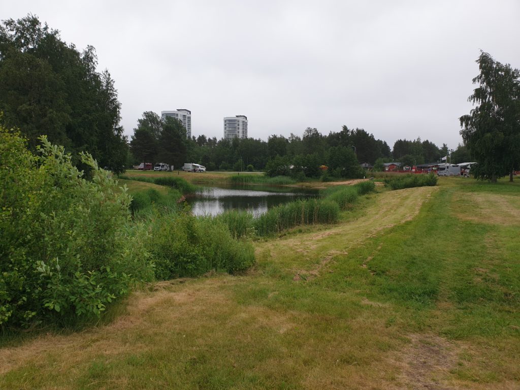 Wir haben ohne Mücken durchgeschlafen, dafür hat der Regen scheinbar die ganze Nacht angehalten. Wir fahren heute über Oulu bis Kokkola. In Oulu machen wir eine Stadtrundfahrt und suchen ein Cafe für ein 2. Frühstück, finden aber leider nichts. Deshalb fahren wir weiter und nehmen das Frühstück an einer Raststätte zu uns. Auf der ganzen Fahrt hört es nicht wirklich auf zu regnen. In Kokkola gehen wir auf den Campingplatz. Es ist ein neuer grüner Platz in einem Freizeitbereich der Stadt.