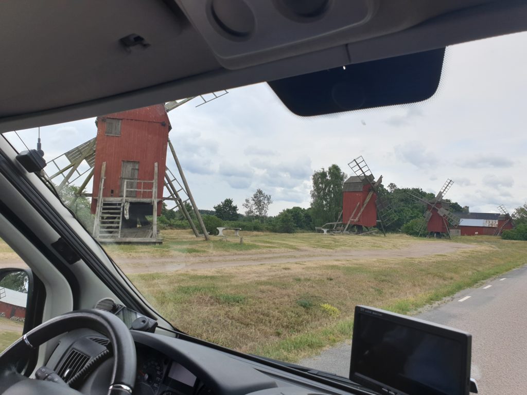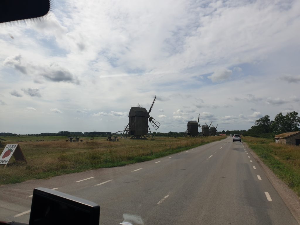 Das Schloß der schwedischen Königsfamilie fällt recht bescheiden aus. Wir fahren weiter Richtung Süden auf der Insel und kommen an unzähligen Windmühlen vorbei, davon sind heute noch 300 bis 400 erhalten. Diese Windmühlen galten in frühen Zeiten als Statussymbol und dienten zum Antrieb von Wasserpumpen und Mühlen. Außerdem gibt es auf der Insel viele kleine und große Steine, deshalb sind die Zäune alle aus aufgeschichteten Steinen gebaut.