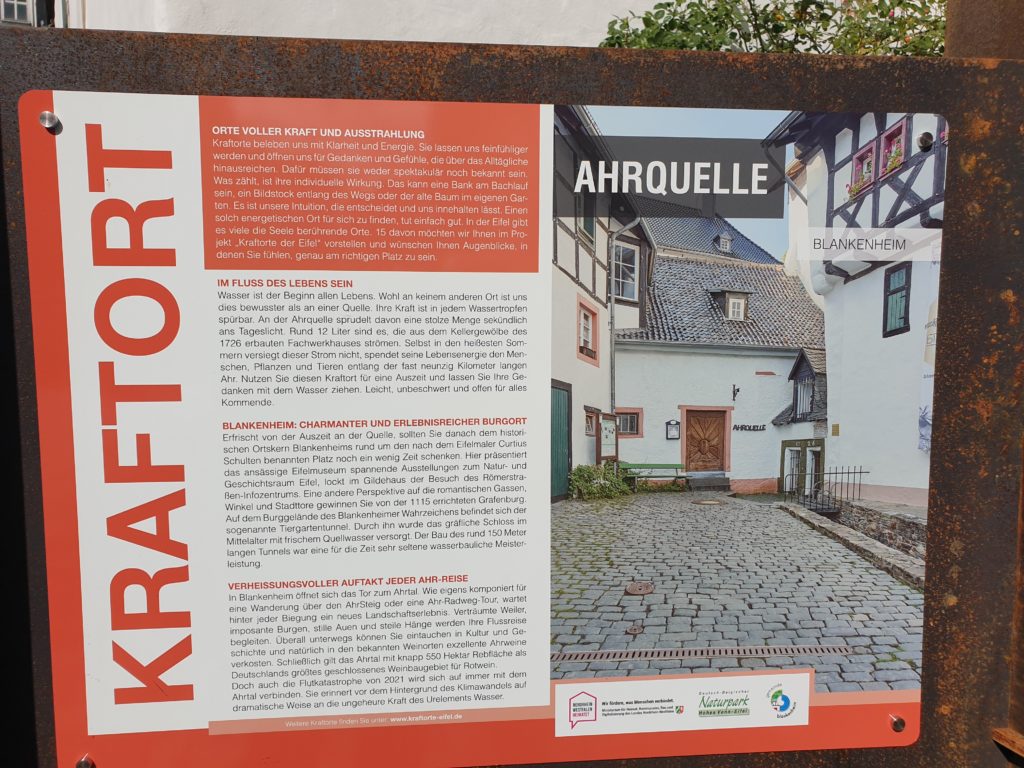Wir fahren heute von Schuld nach Blankenheim an der Ahr entlang. Hier gibt es kaum Schäden, die Ahr ist auch sehr klein in diesem Abschnitt. In Blankenheim wird erstmal eingekauft und dann fahren wir zur Ahrquelle.