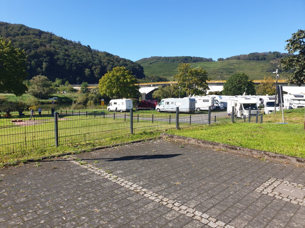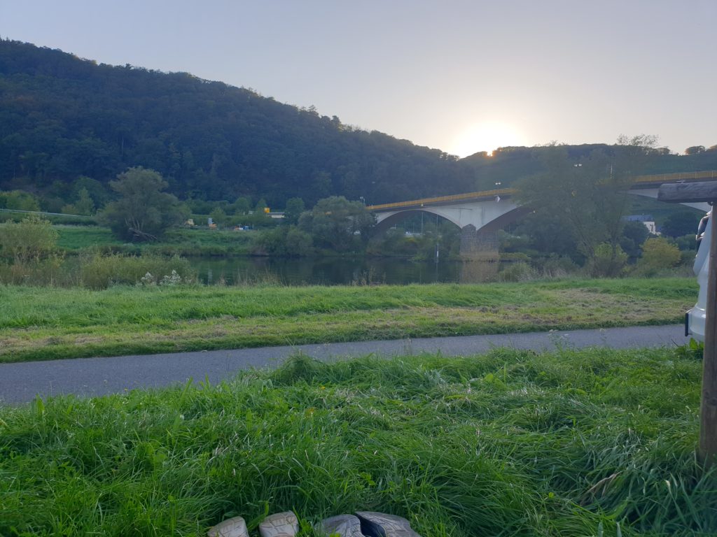 Heute morgen ist es sehr nebelig, die Sonne kommt erst am Mittag raus, dann aber mit Macht. Wir fahren über Bernkastel nach Zeltingen. In Bernkastel wollten wir eigentlich halten, die Stadt ist aber überlaufen. Also fahren wir weiter bis nach Zeltingen und finden dort einen schönen Stellplatz für 15 €, alles ist inklusiv. Wir stehen direkt an der Mosel, es kann nicht besser sein. Wir machen einen Rundgang durch den langgezogenen Ort, trinken einen Kaffee mit einem Stück warmen Zwiebelkuchen, lecker.