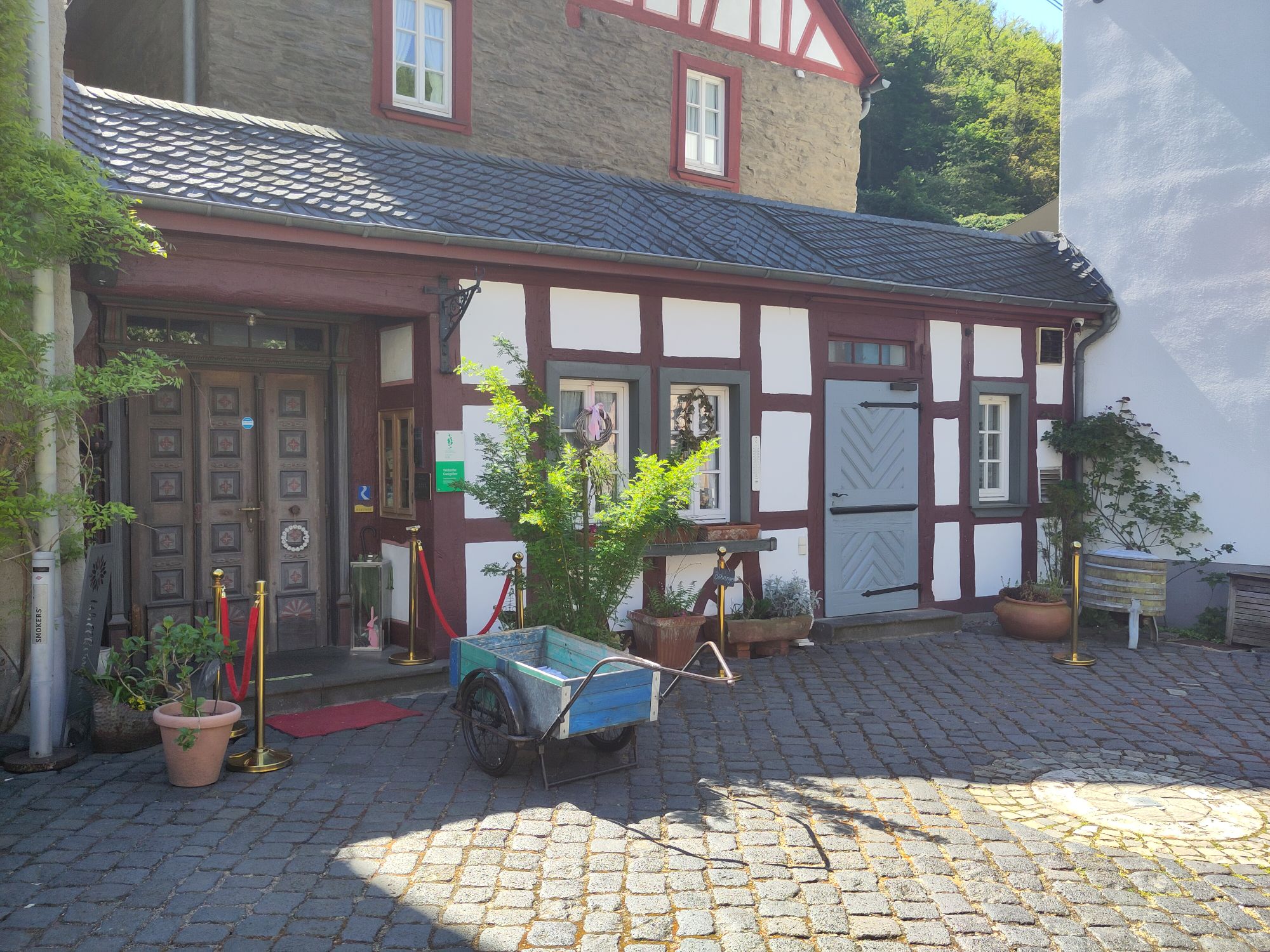Dieses Hotel „Alte Mühle“ wurde in einer alten Wassermühle erschaffen, das Original Mühlrad ist im Innenraum erhalten und lässt sich besichtigen. Es gibt viele kleine Zimmer und Nischen.