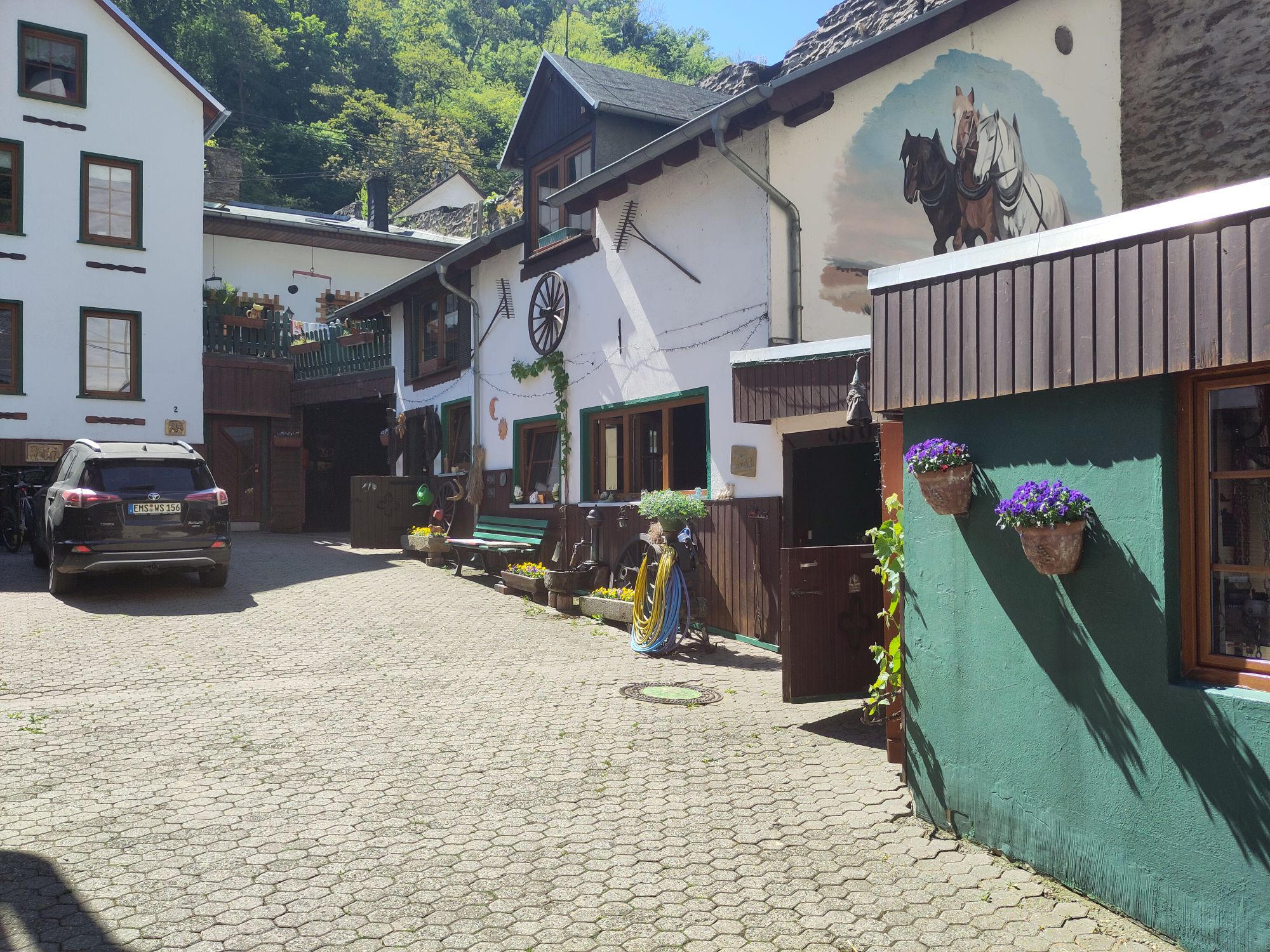 Am Morgen scheint mal kurz die Sonne, danach dauerhaft bedeckt. Wir machen einen kleinen Spaziergang durch Bad Ems. Genehmigen uns einen Kaffee und ein Stück Kuchen.