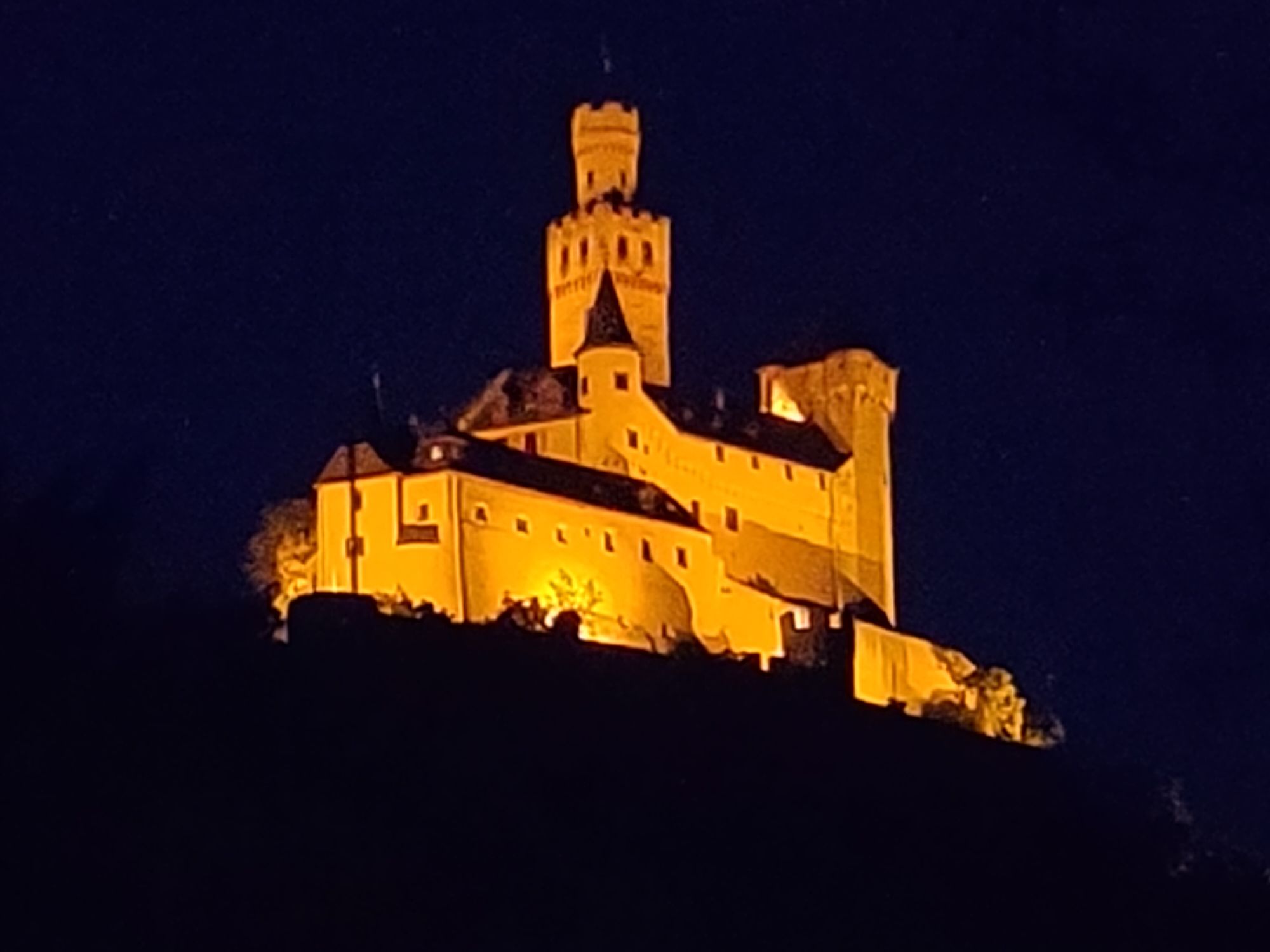 Gegen Abend werden die Kreuzfahrer mit 2 Bussen zur Marksburg herauf gefahren, zur Besichtigung und zum Essen, was ein Service, wir müssten laufen.