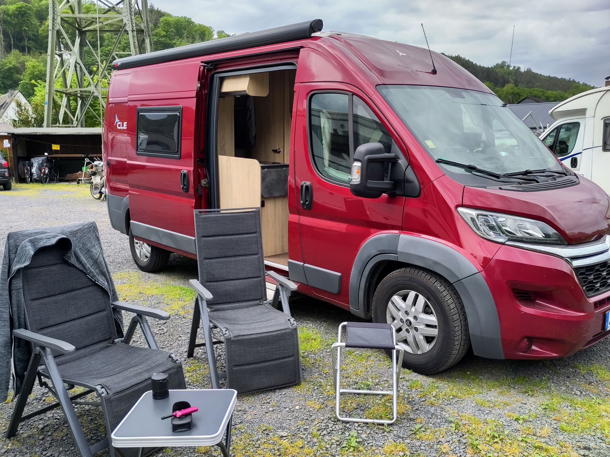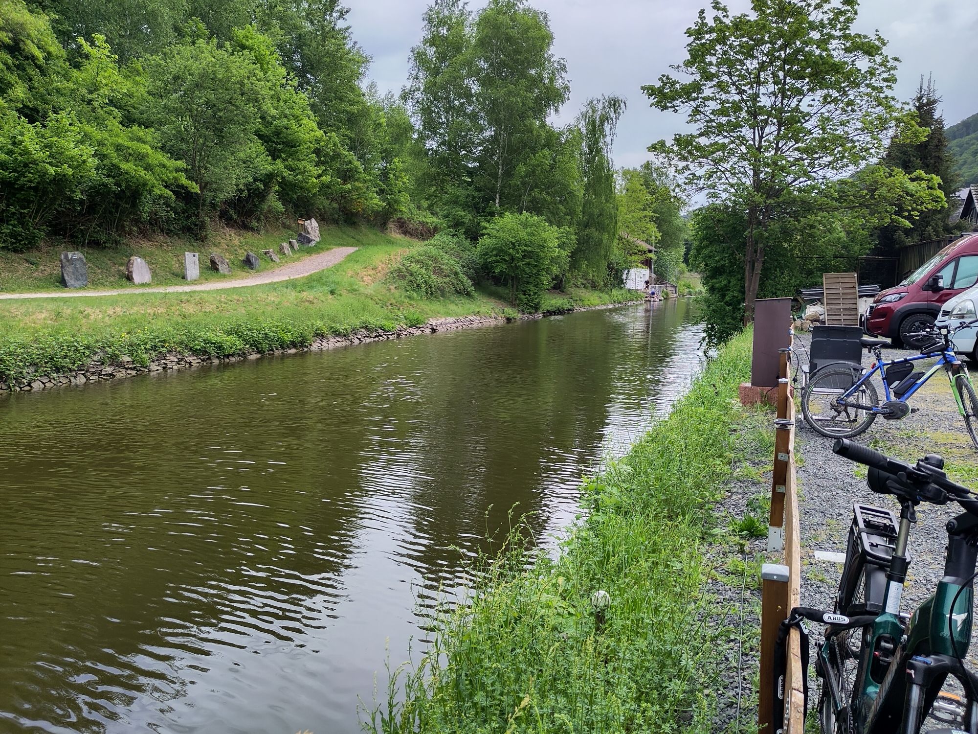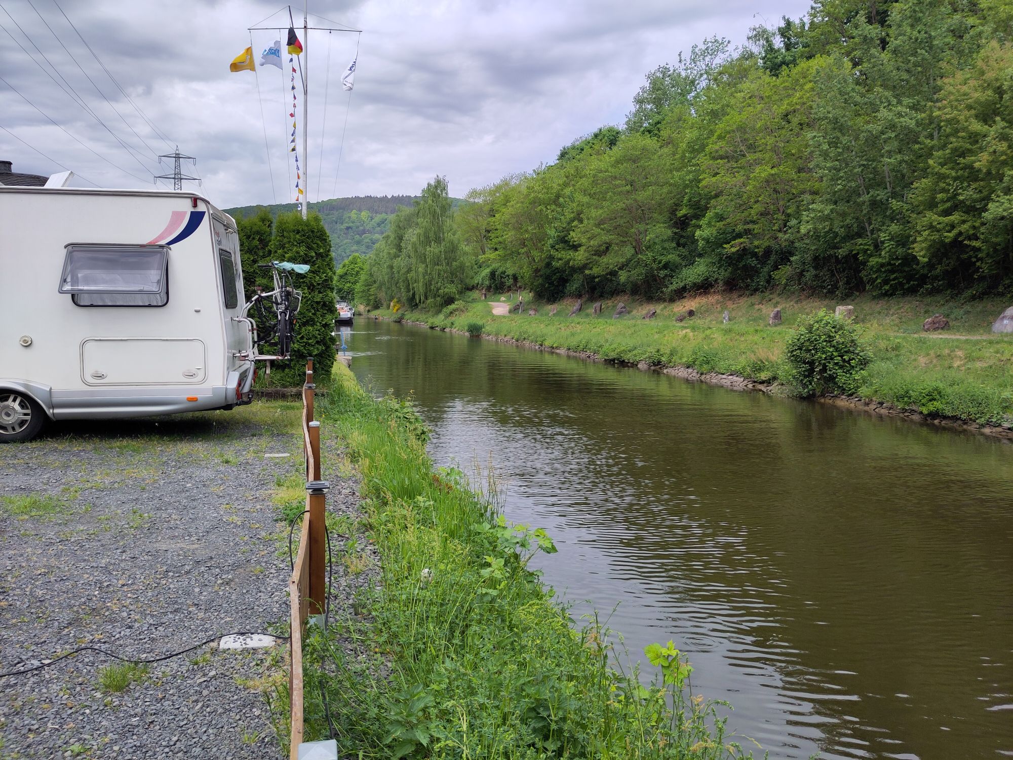 Heute morgen ist es leicht bedeckt, nach einem ruhigen Frühstück packen wir unsere Sachen und fahren wieder los. Nach 30 Minuten finden wir an der Marina in Bad Ems einen kleinen Stellplatz mit allem Service direkt an der Lahn. Passt.
