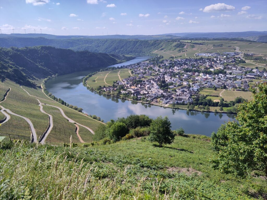 Heute verwöhnt die Sonne uns kaum, es ist bedeckt. Wir machen wieder einen ruhigen Tag. Gegen Mittag gehen wir nochmal durchs Dorf und zur Moselterrasse, dort gibt es leckeren Flammkuchen.