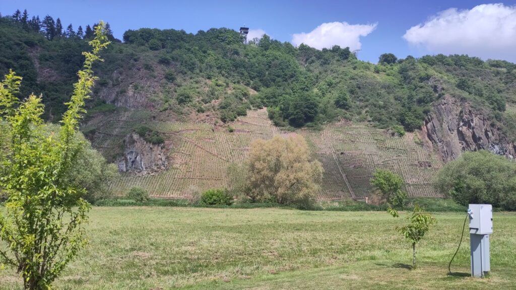 Wir sind heute wieder auf Tour gefahren, dieses Mal an die Mosel. Wir fahren die B 9 bis Koblenz, dann mit Umwegen auf die Hunsrück Höhenstraße (Baustellen), in Zell dann runter an die Mosel nach Pünderich auf den Stellplatz an der Mosel.