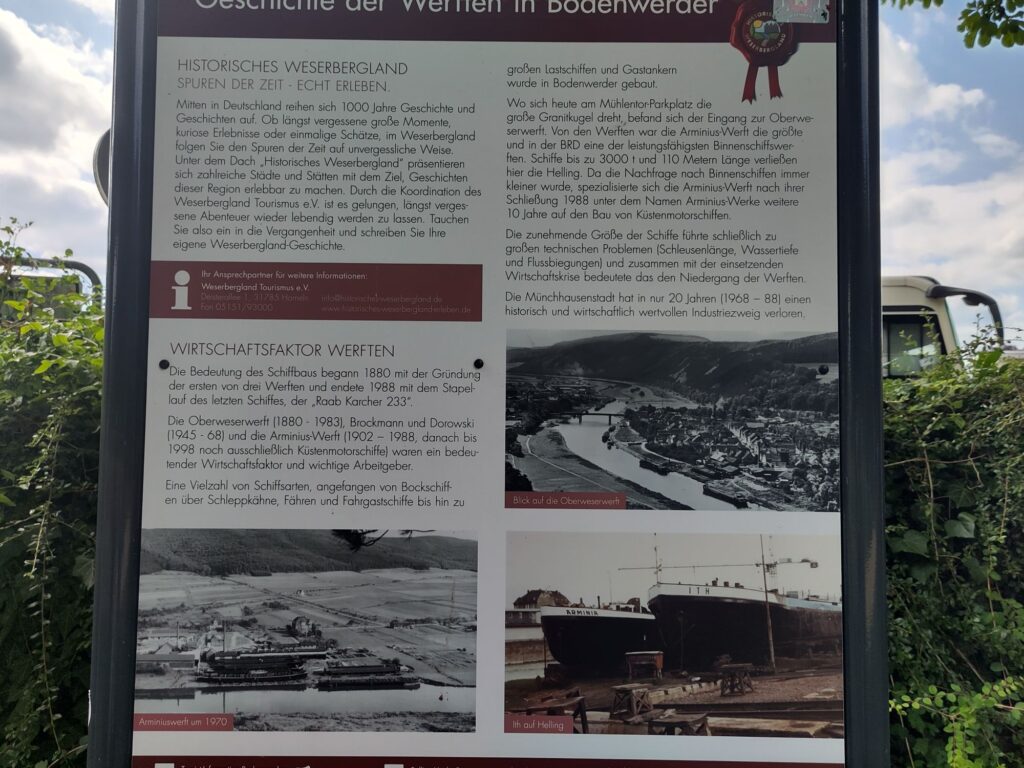 Wir sind heute in 4 h nach Bodenwerder an die Weser gefahren. Unterwegs war der Verkehr zeitweise zähflüssig. Keine Unfälle oder große Behinderungen, alle durch die „guten Fahrer“ produziert. Wir bekommen in Bodenwerder einen Stellplatz direkt an der Weser.