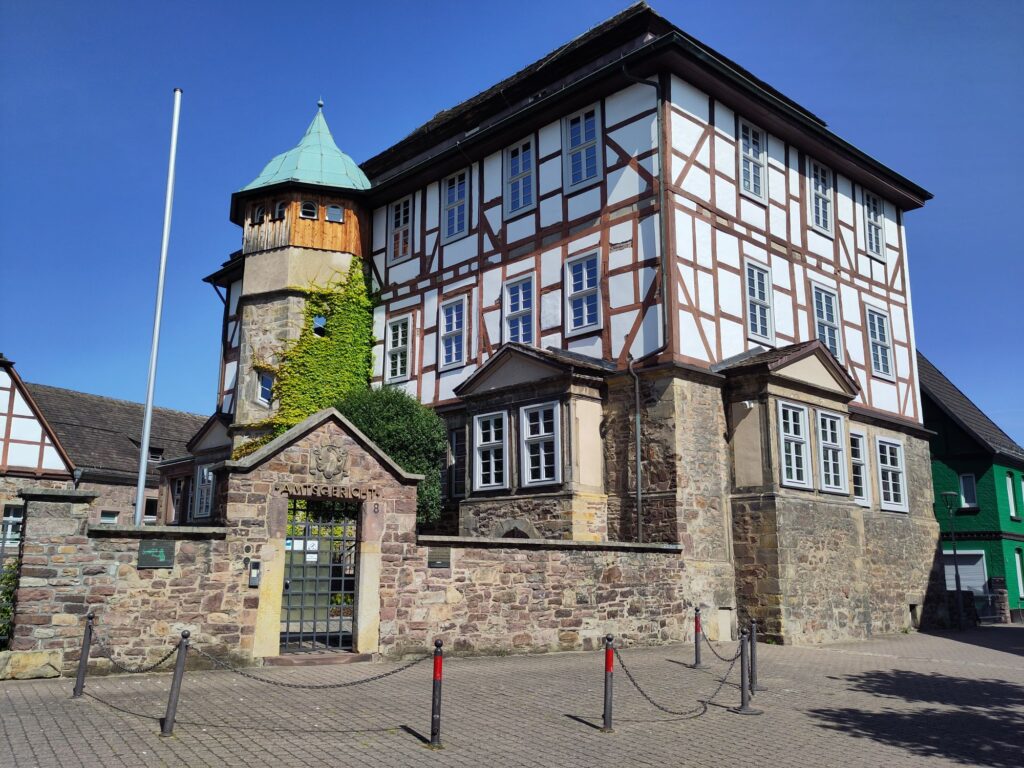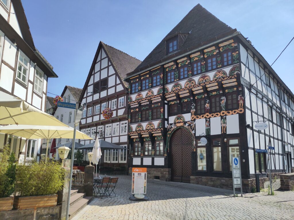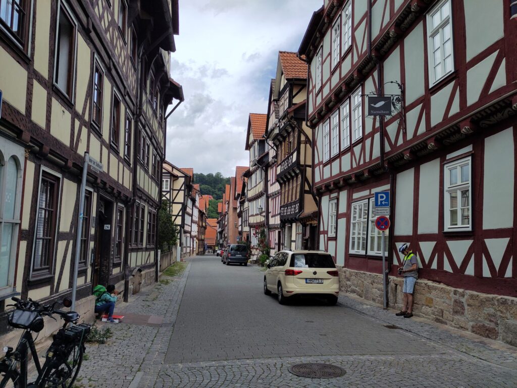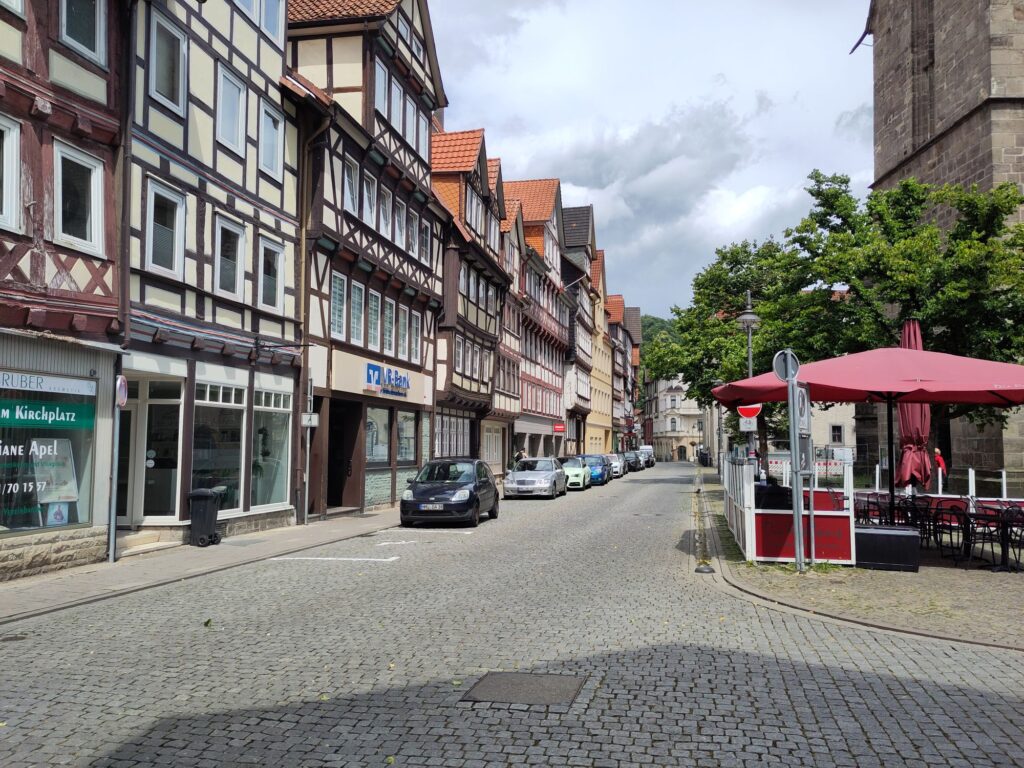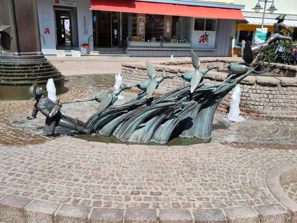 Wir besichtigen die Stadt von Münchhausen mit Museum usw. Heute ist Markttag. Die Fußgängerzone hat wenige Geschäfte und hat von 13 bis 15 Uhr Mittagspause.