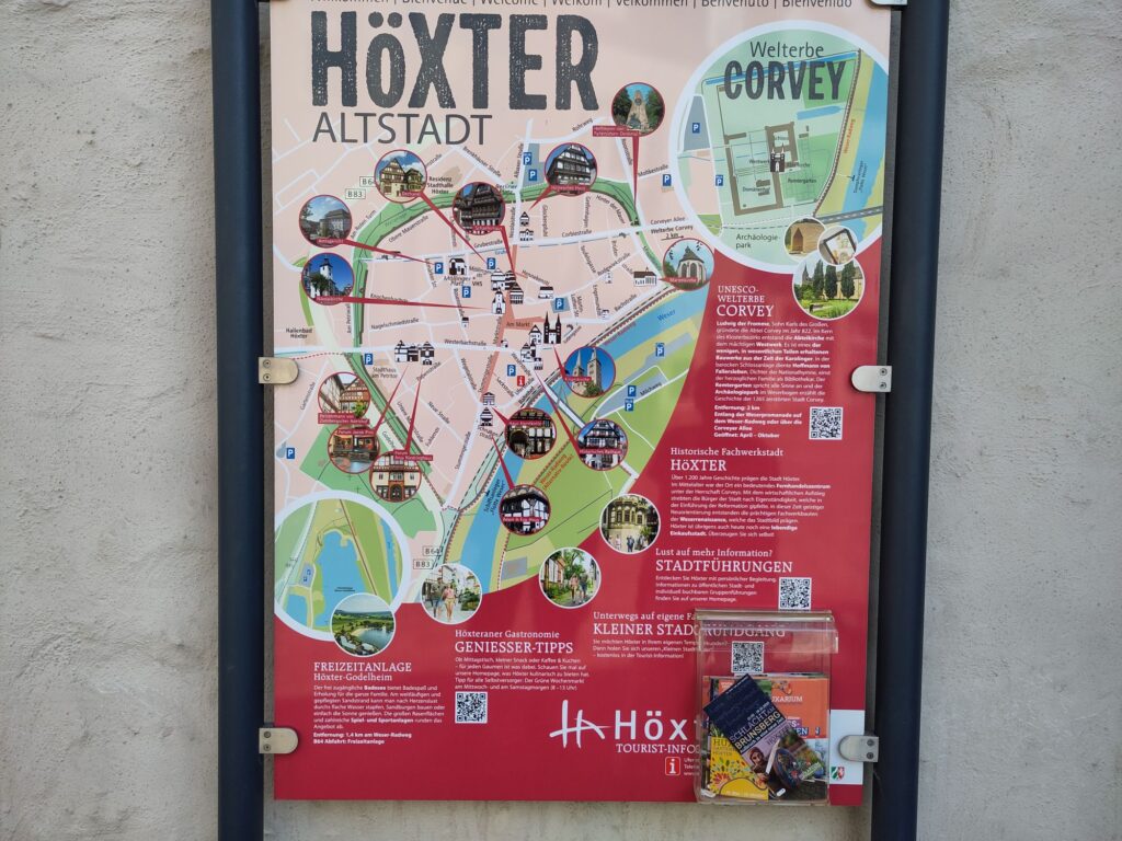 Das Wetter ist heute morgen wieder hervorragend. Auf der anderen Weser-Seite ist heute Flohmarkt. Wir brauchen den nicht, wir packen unsere Sachen und fahren weiter nach Höxter. Der Stellplatz ist auf dem alten Floßplatz an der Weser mit Sicht auf die Stadt. Ein guter Stellplatz mit allem was man braucht, bezahlt wird mit der EasyApp.