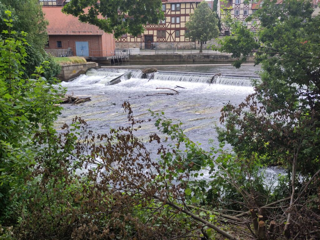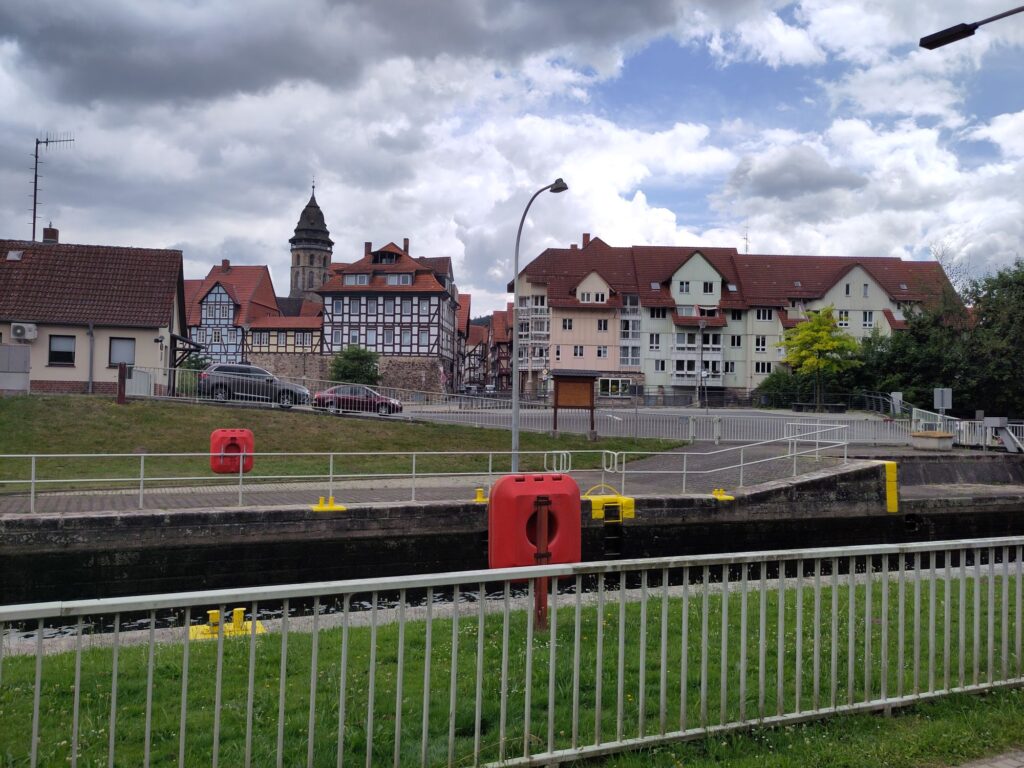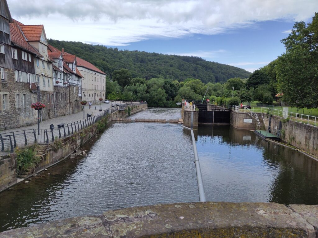 Heute morgen ist es merklich kühler geworden, es werden heute nur maximal 24 ° C. Nach dem Frühstück packen wir unsere 7 Sachen und fahren nach Hann Münden. Der Stellplatz auf dem Parkplatz am Weserstein sagt uns nicht zu. Wir fahren auf den Campingplatz auf der Fuldainsel, direkt gegenüber der Altstadt.