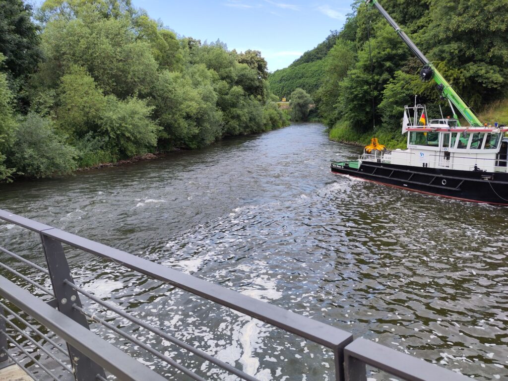 Wir hatten heute sogar Schiffsverkehr auf der Weser, 2 x das Fahrgastschiff „Höxter“!