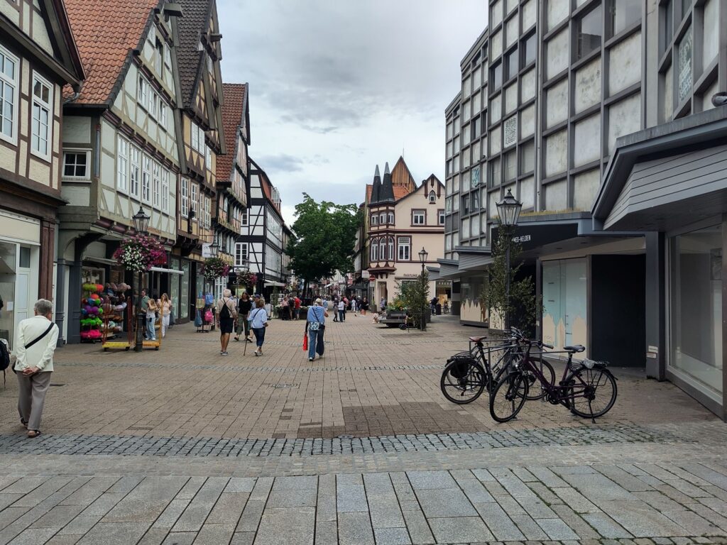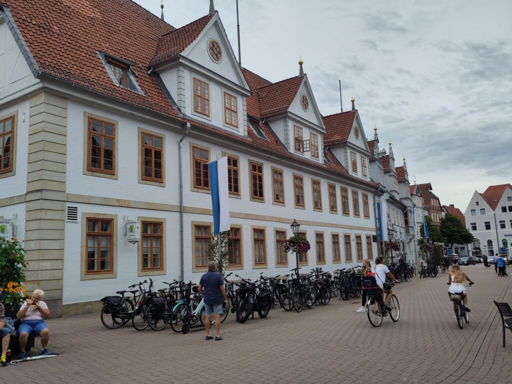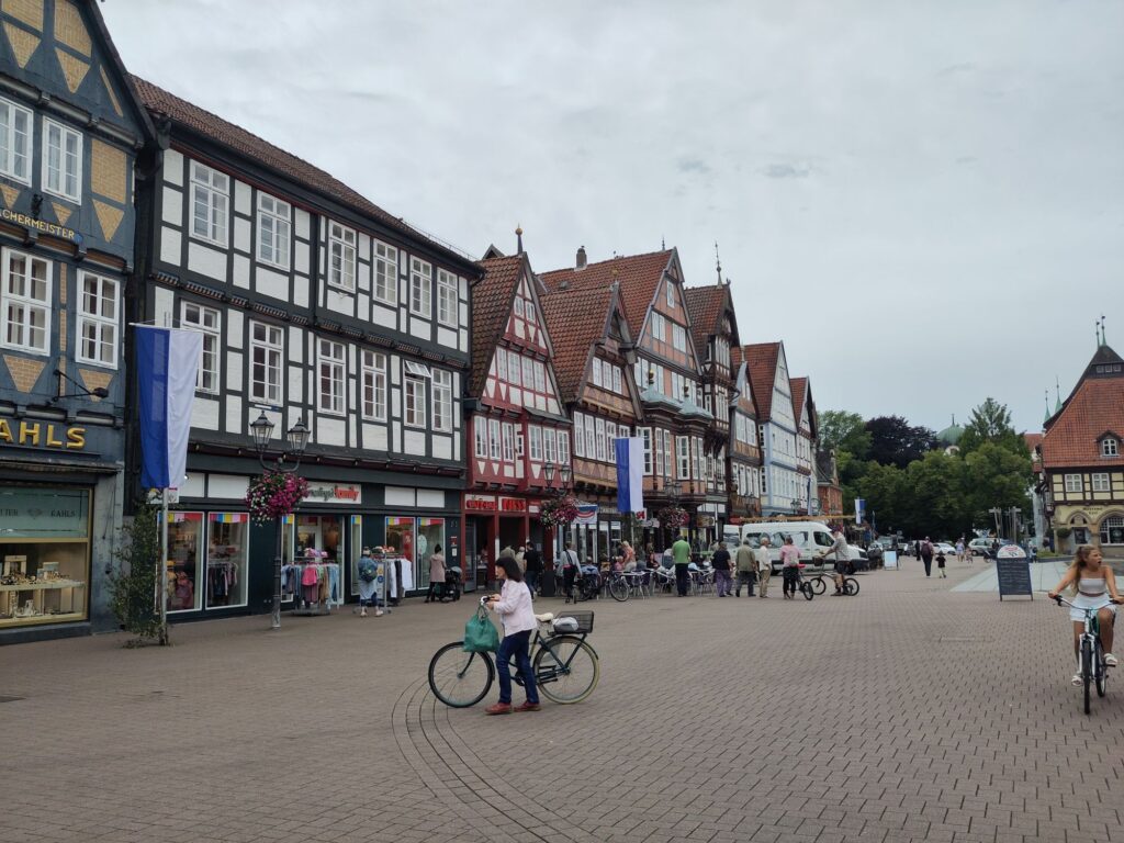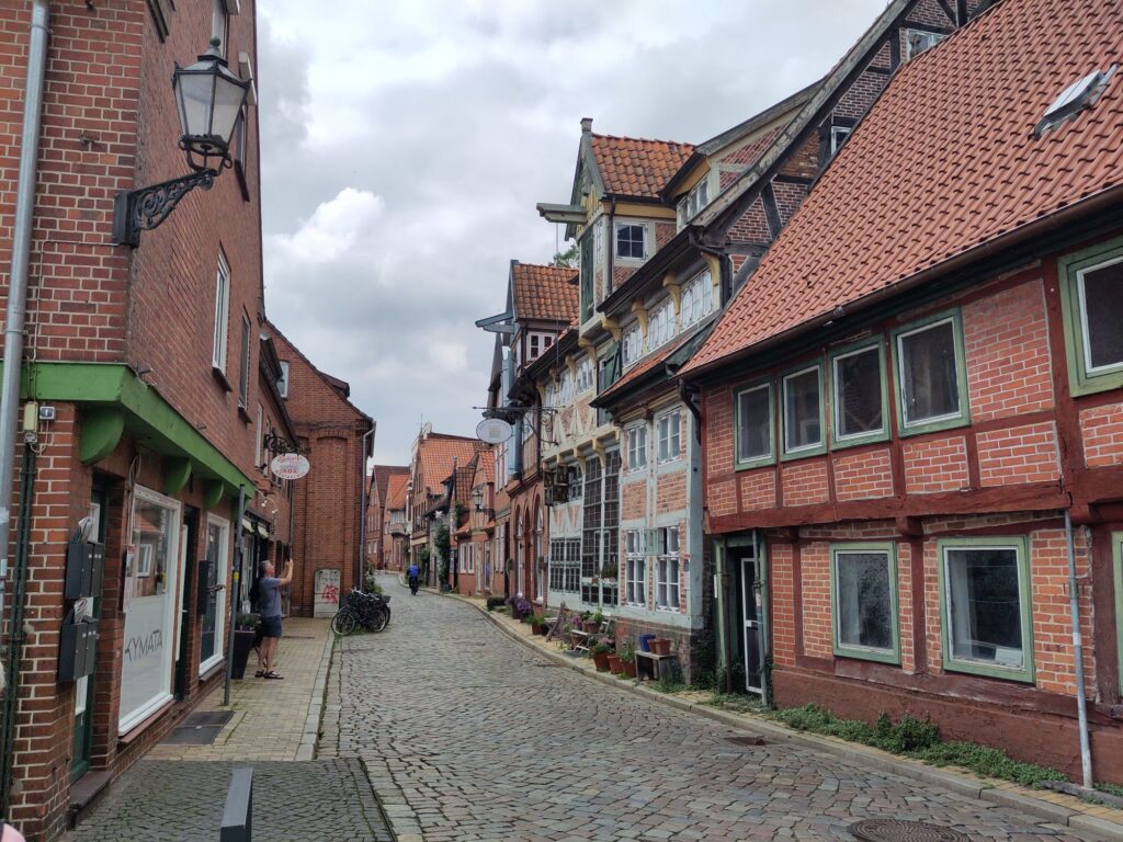 Heute morgen ist es bedeckt und es regnet immer wieder ein bisschen. Wir erkunden die Altstadt in Celle, gehen Kaffee trinken und Shoppen etwas.