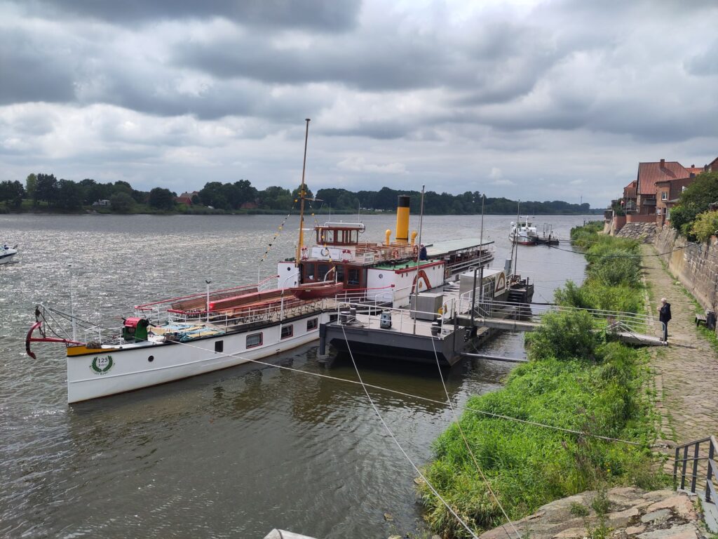 Heute fahren wir nach Lauenburg über die Uferstraße. Wir kommen durch viele kleine Ortschaften und halten nach einem Aldi Ausschau. Leider Fehlanzeige, wo kaufen die Leute hier ein? Wir finden einen schönen Stellplatz an der Marina in Lauenburg mit Skippertreff, einem netten Lokal.