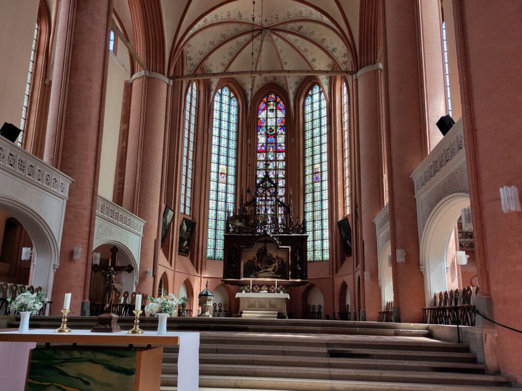Am Nachmittag geht es in die Altstadt von Lüneburg und wir können in die Kirche. Die Kirche steht auf einem ehemaligen Salzbergwerk, deshalb stehen die Säulen schief und sind mit Stahlrundeisen verspannt. Die Besonderheit dieser Kirche ist die Unterkirche im Untergeschoss, die wurde zuerst gebaut. Die Altstadt von Lauenburg hat uns besser gefallen.